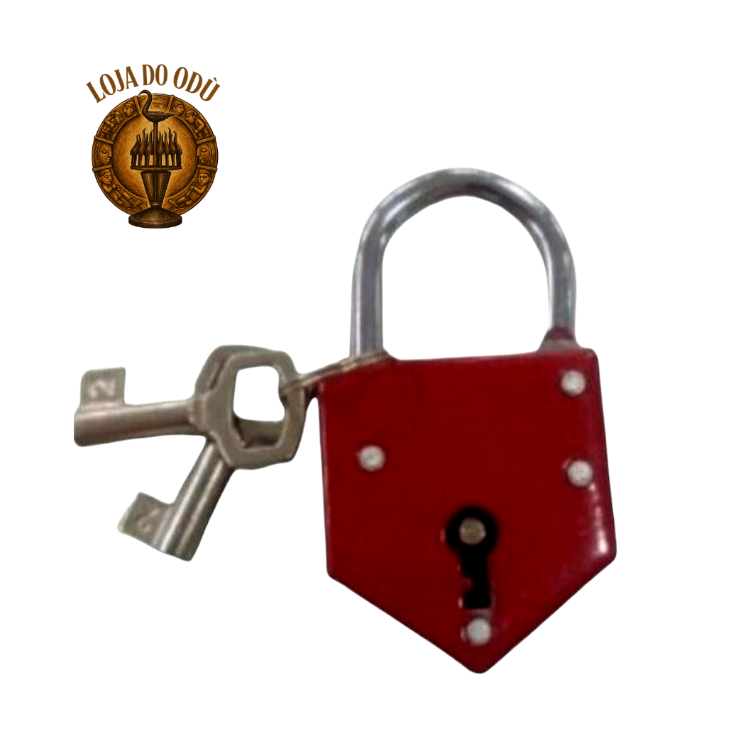 Cadeado tradicional nigeriano utilizado em diversas ritualísticas afro-religiosas. Produzido em metal, acompanha chave e está disponível em diferentes cores.