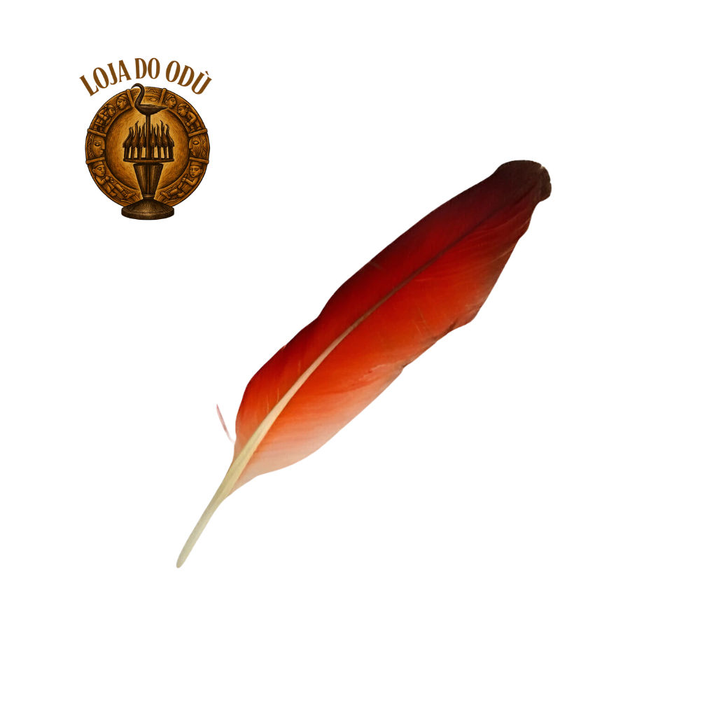 Pena natural conhecida como Ekodidé, utilizada em diversas práticas da religiosidade afro. Apresenta coloração vermelha característica e formato delicado. Produto de origem natural, podendo apresentar variações de tamanho, tonalidade e pequenas imperfeições próprias de materiais naturais. Ideal para composições e usos tradicionais.