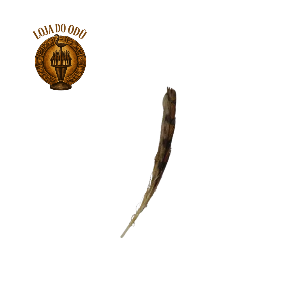 Pena natural conhecida como Owiwi, utilizada em diversas práticas da religiosidade afro. Produto de origem natural, podendo apresentar variações de tamanho, formato e tonalidade, além de pequenas imperfeições características de materiais naturais. Ideal para composições e usos tradicionais.